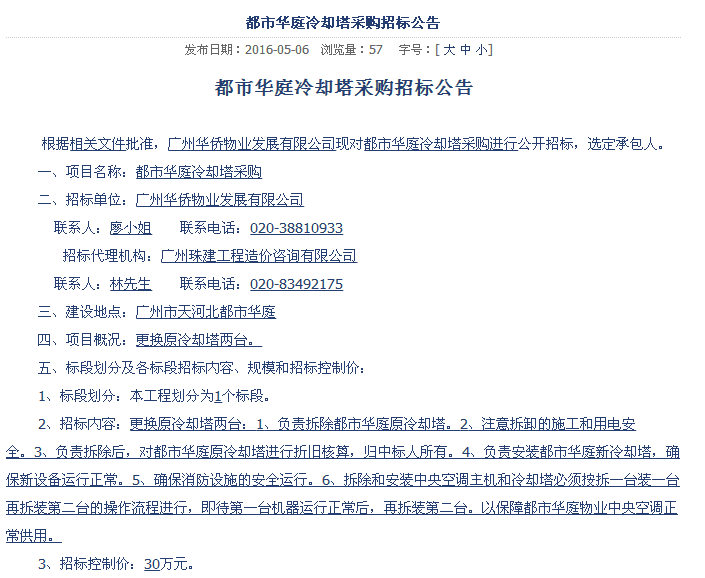 第三方網(wǎng)上公開冷卻塔招標信息: